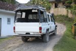 Soudain, un pick-up arrive, il est déjà quasiment plein, mais les personnes se serrent, prennent leurs enfants sur les genoux et nous arriverons quand même à tous monter !! 12 personnes sur la plateforme arrière dont moi (luc) allongé entre les deux rangées, les jambes sur les pieds des passagers et à gérer tant bien que mal les crampes du fait de la longue descente et de la piste défoncée ! Tout le retour se fait dans une bonne ambiance et nous arrivons vers 19h à Popayán… Direction l’hôtel où une bonne douche chaude nous fait énormément de bien et nous filons manger avec Chloé une pizza dans un restaurant italien tenu par une Suisse !!